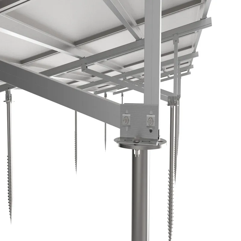 Solar ground mounting system is manufactured in zinc-mg-aluminum steel plates and can be used in a variety of conditions using concrete foundations and ground screws for different panel arrays. Using zinc magnesium aluminum steel structure, this solar mount type has significant advantages.
